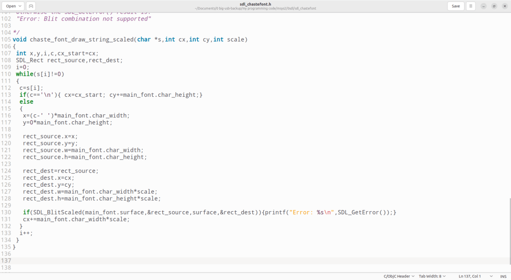 I translated my font library to use the SDL library this time. This means I could use the same font functions when making an SDL game instead of Raylib. I plan to make a simple SDL only game at some point.