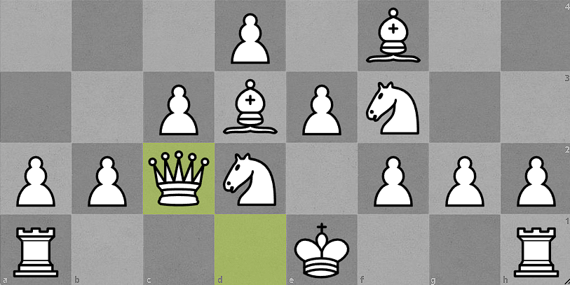 Take a look at this image. It is only white’s side of the board. That’s because the London is sort of general purpose and doesn’t depend on a specific move the opponent does. In most cases, you won’t get a chance to complete this entire setup if your enemy attacks you quickly, however, I want you to look at this image and see that almost every piece has another piece defending it. This setup also allows the king to choose which side to castle on depending on your style and what your opponent does.